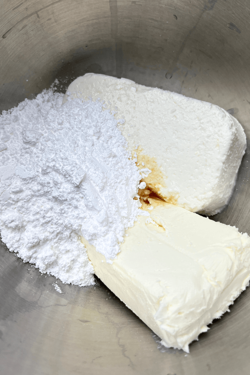 - Make filling, mix all the ingredients together with a hand mixer to get a cream consistency.