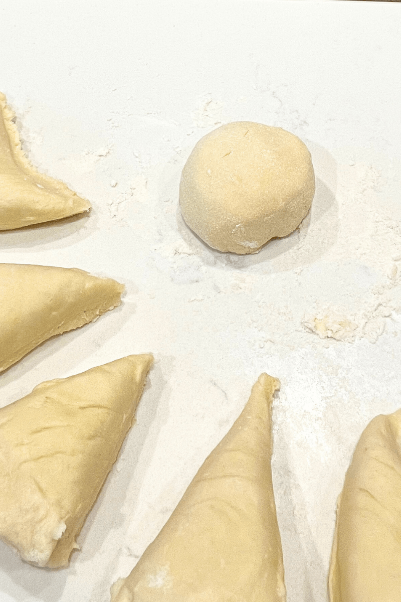 - Divide the dough into 8 equal pieces using a sharp knife or a bench scraper.