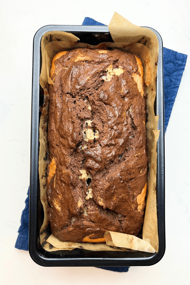 - Add the remaining 1/4 chocolate and using a knife make a zig zag in the batter to create more of the marble effect.