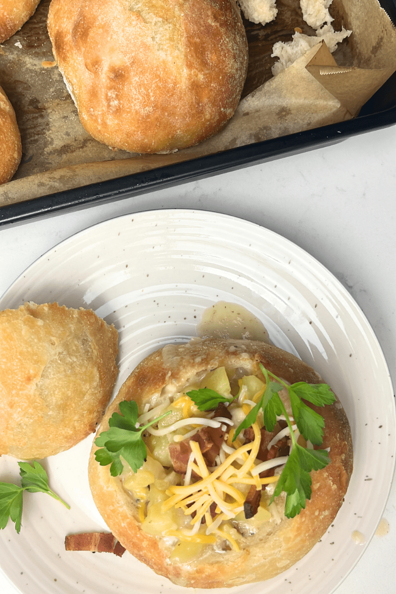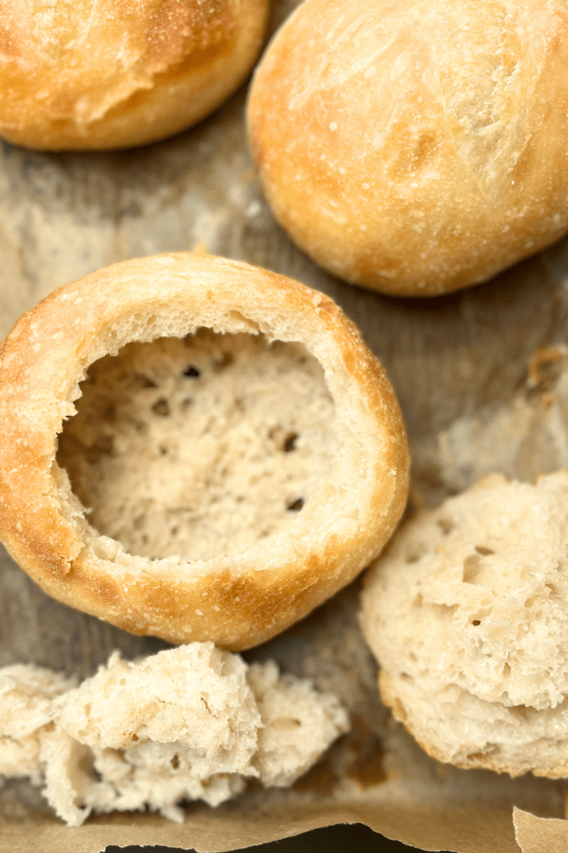 - Bake the bread bowls for 30-40 mins. Until they are golden brown to your liking.