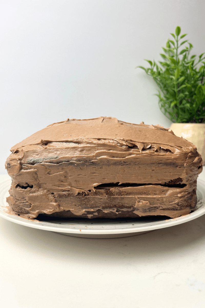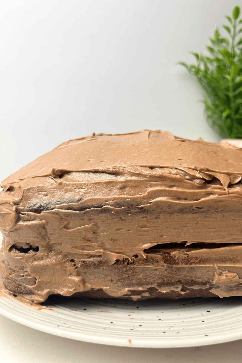 - Bonus tip: I like to shave a little bit of chocolate on top of the cake just for looks.