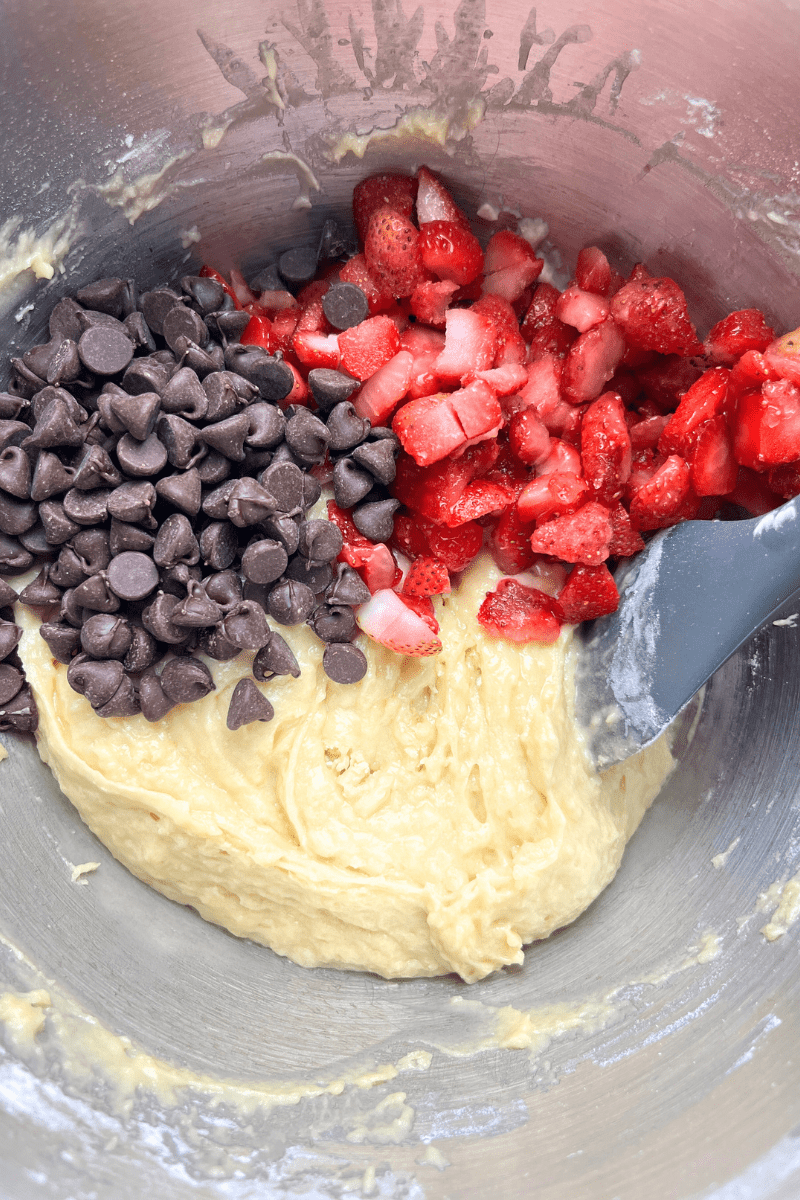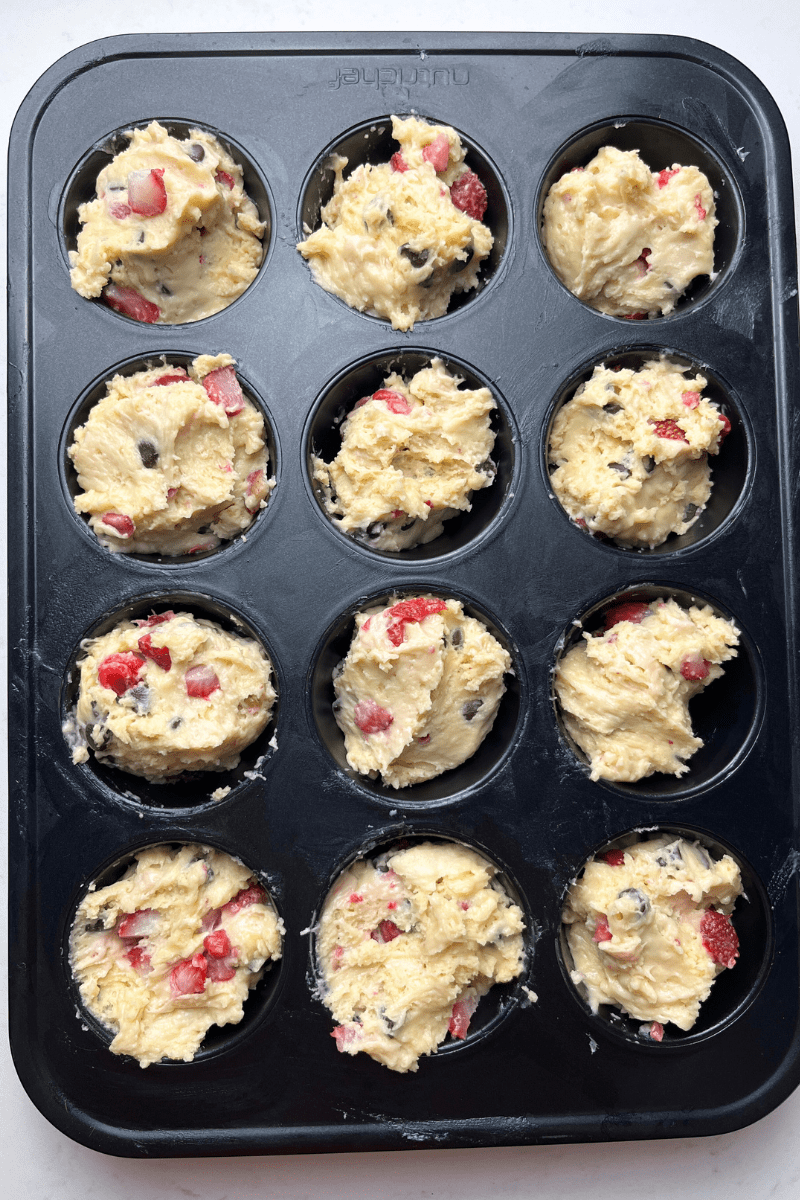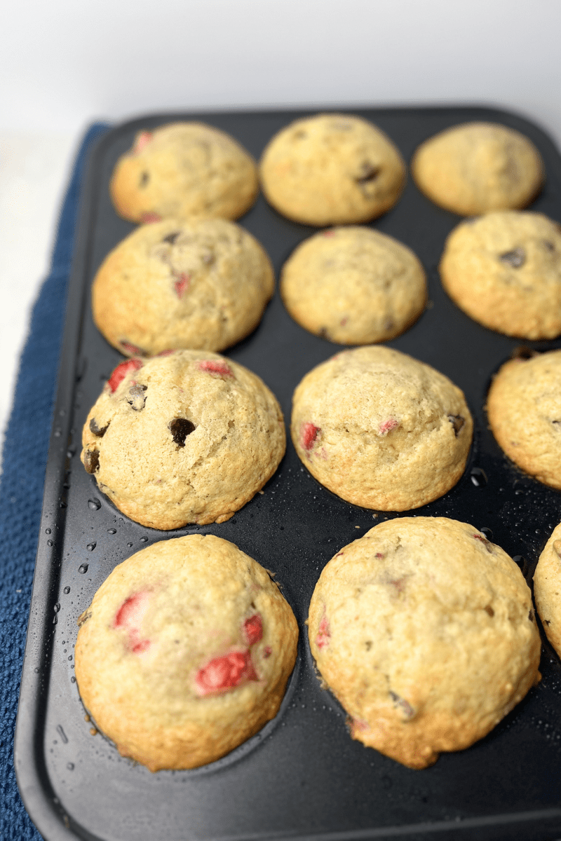 How to make Sourdough Chocolate Chip Strawberry Muffins: