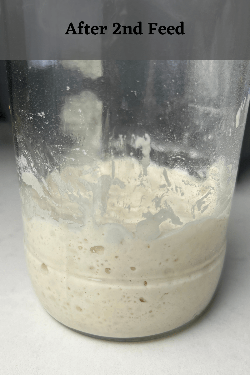 4. Repeat this process every morning and evening until your starter is consistently active and doubles in size within 6-8 hours after feeding. (About 5 days) Rehydrating sourdough starter.
