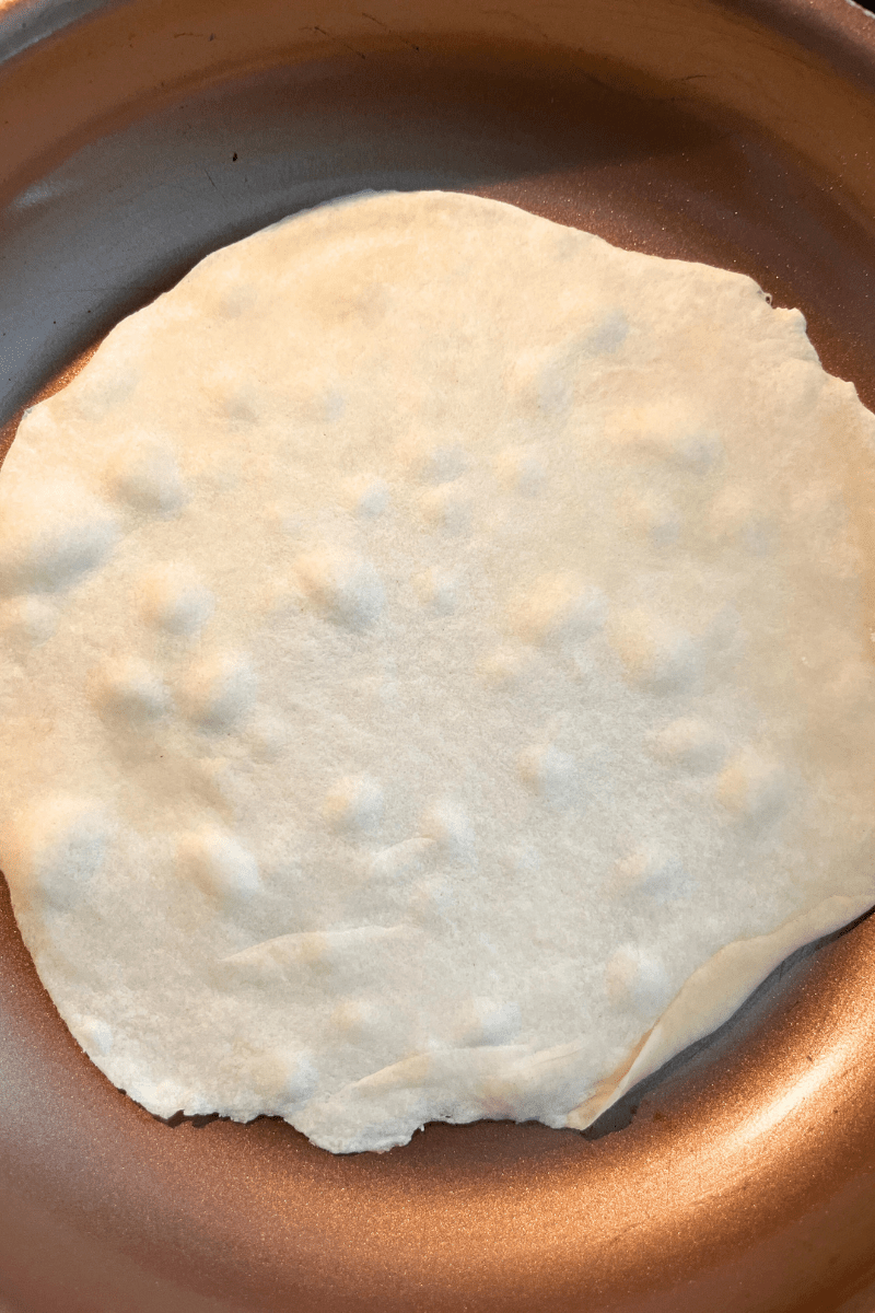 - On a heated skillet, fry each tortilla for about 1 min on each side.