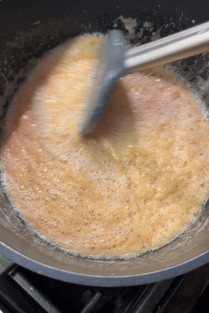 - On medium heat dissolve the sugar and stir until all of the ingredients are well incorporated.