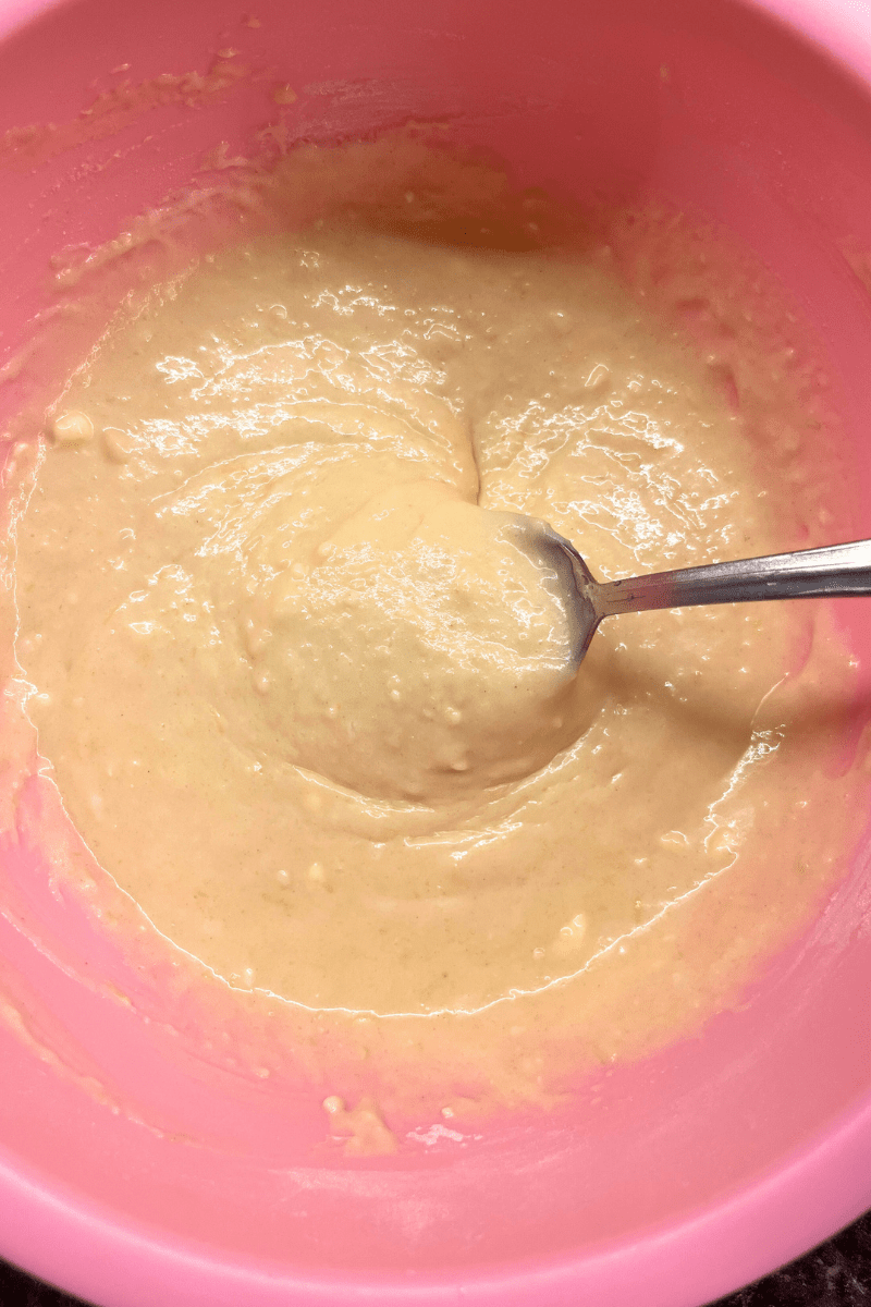 - Pour the batter into the loaf pan and bake for about 30 mins. Depending on your oven this time might vary. To make sure the loaf is fully baked place a wooden toothpick right in the middle, if it comes out clean, it’s done. Also the color of the bread should turn golden once it’s done cooking.