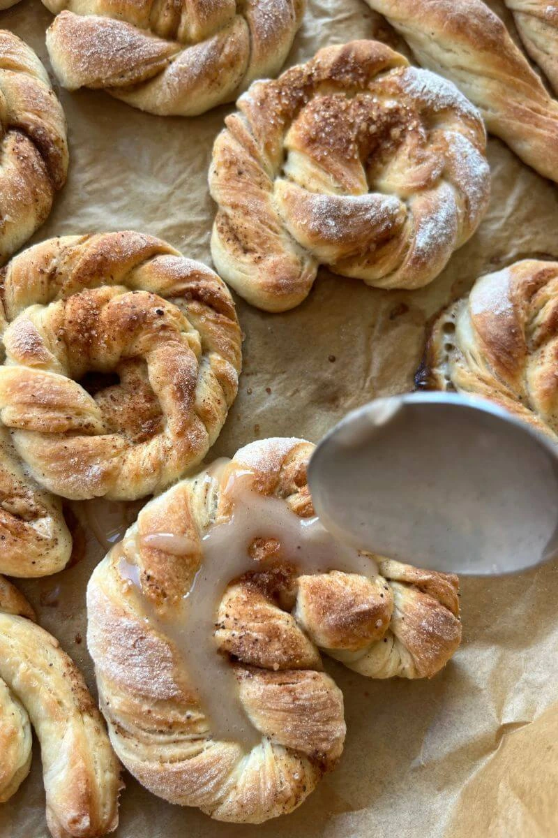 - Optional: Mix powdered sugar and lemon juice for a glaze and drizzle over cooled knots.½ cup powdered sugar, 1 –2 tbsp lemon juice