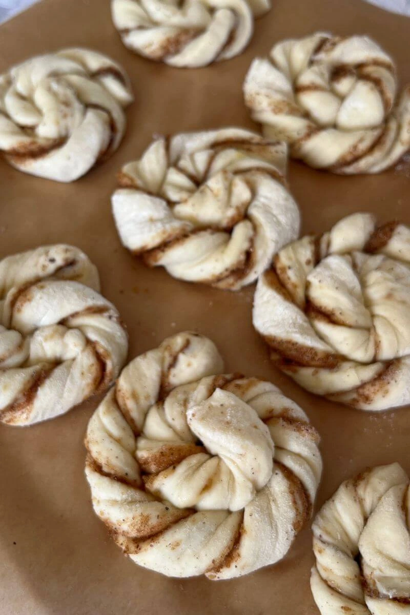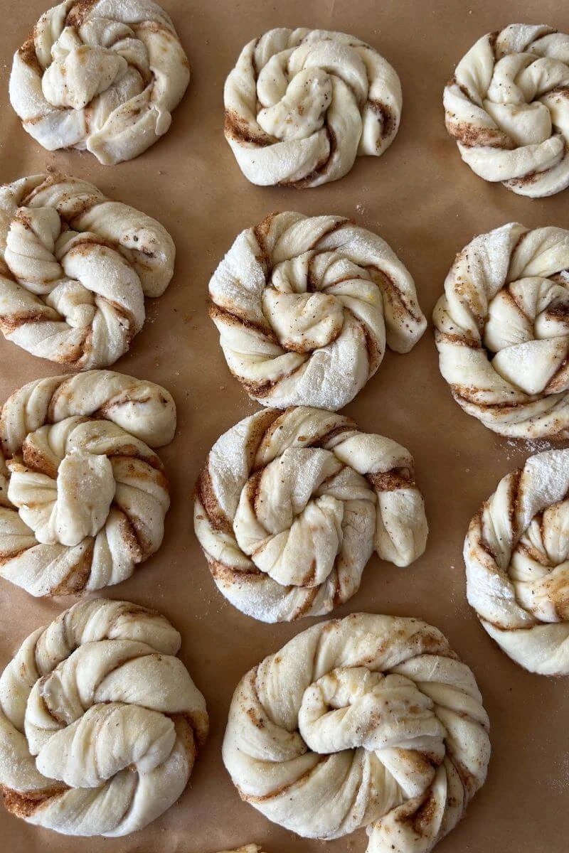 - Place knots on a parchment-lined baking sheet. Cover and let rise for 1–2 hours until puffy.
